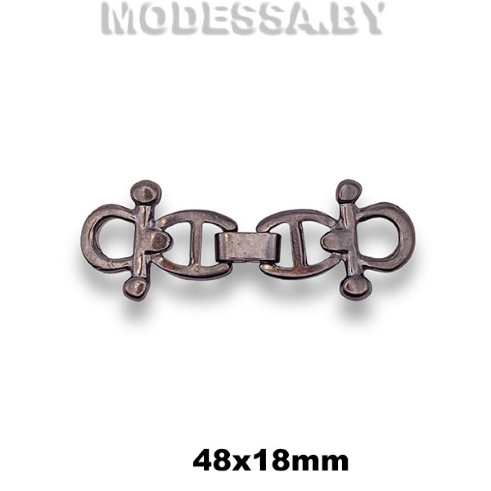 Пришивное украшение металлическое, артикул: 871. Размер 48х18мм. Ширина отверстия для протяжки 5мм. Модель украшения идеально подходит для декорирования горловины блузок, рубашек или платьев, а также для декоративного оформления сумок, аксессуаров и др.