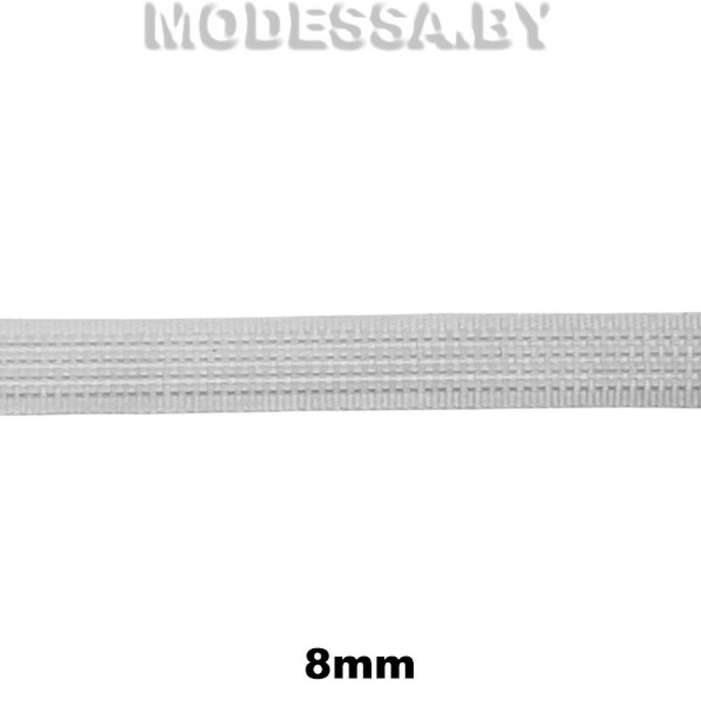 Регилин пластиковый, артикул: JD--8ММ. Ширина 8мм. Регилин служит для жесткой фиксации шва и сохранения формы изделия. Используют при пошиве корсажей, корсетов, сумок, шляп, платьев без бретелей и подъюбников для пышных платьев.