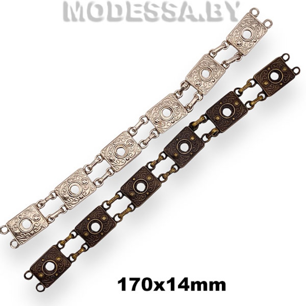 Пришивное украшение металлическое цепочка, артикул: 2130. Размер 170х14мм. Модель украшения идеально подходит для декорирования горловины блузок, рубашек или платьев, а также для декоративного оформления сумок, аксессуаров и др.