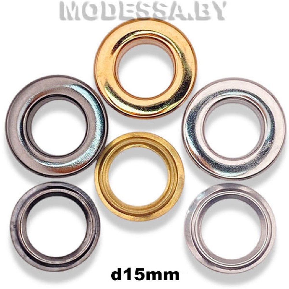 Люверсы (блочки) металлические. Внутренний диаметр 15мм. Внешний диаметр 26мм. Высота ножки 6мм. Позволяют аккуратно оформить шнуровку и укрепить края отверстий для шнуровки, защитить их от трения. Подходят для поясов, а также создания шнуровки на обуви, верхней одежде, корсетах, чехлах, тентах и других изделиях из плотных материалов. Установка люверса производится с помощью пресса и специальных насадок. Диаметром люверса называется внутренний диаметр отверстия в нем. Этот размер задается отверстием, которое необходимо получить.