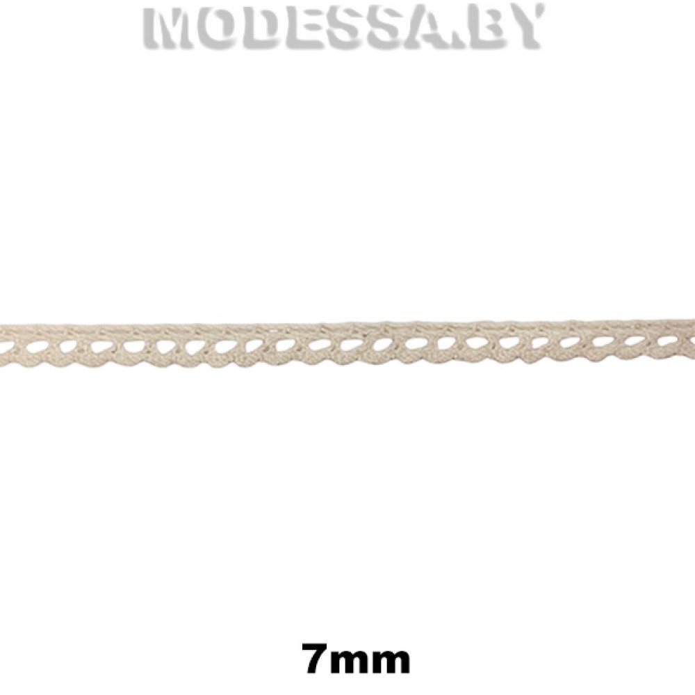 Кружево хлопковое, артикул: A-6881. Ширина 7мм. Применяется при пошиве одежды, белья и домашнего текстиля, а также используют для декора других материалов.