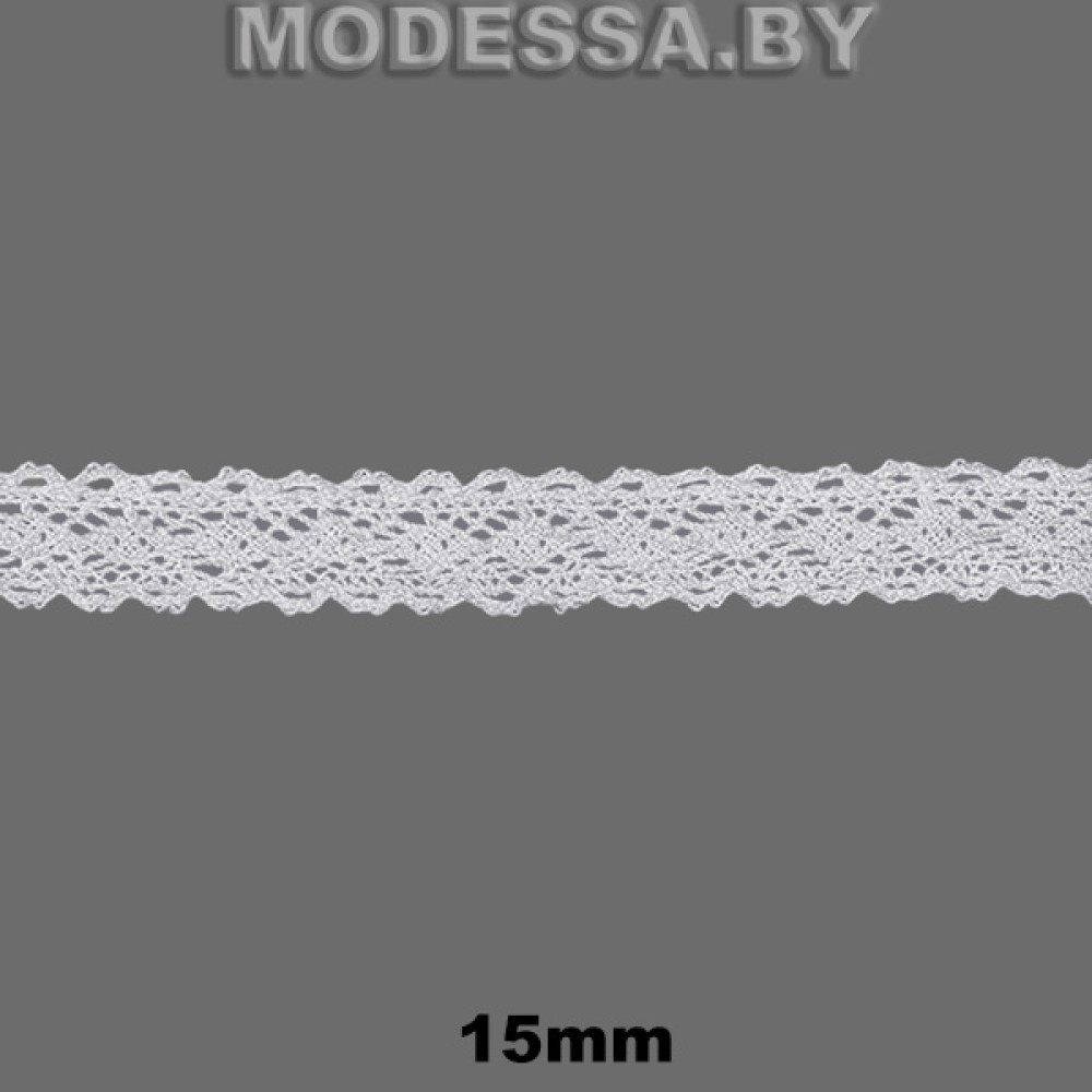 Кружево хлопковое, артикул: A-8414. Ширина 15мм. Применяется при пошиве одежды, белья и домашнего текстиля, а также используют для декора других материалов.