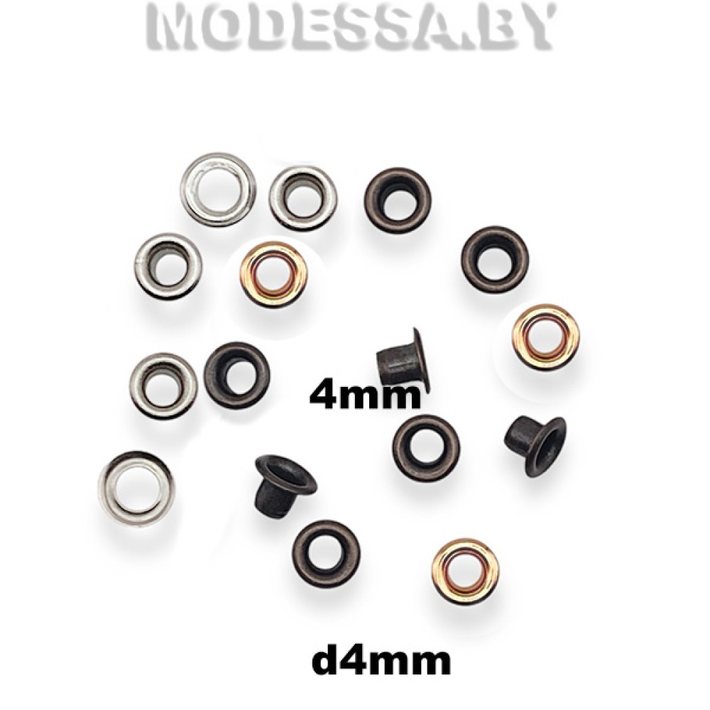 Люверсы металлические (блочки). Внутренний диаметр 4мм. Внешний диаметр 7мм. Высота ножки 4мм. Позволяют аккуратно оформить шнуровку и укрепить края отверстий для шнуровки, защитить их от трения. Подходят для поясов, а также создания шнуровки на обуви, верхней одежде, корсетах, чехлах, тентах и других изделиях из плотных материалов. Установка люверса производится с помощью пресса и специальных насадок. Диаметром люверса называется внутренний диаметр отверстия в нем. Этот размер задается отверстием, которое необходимо получить.