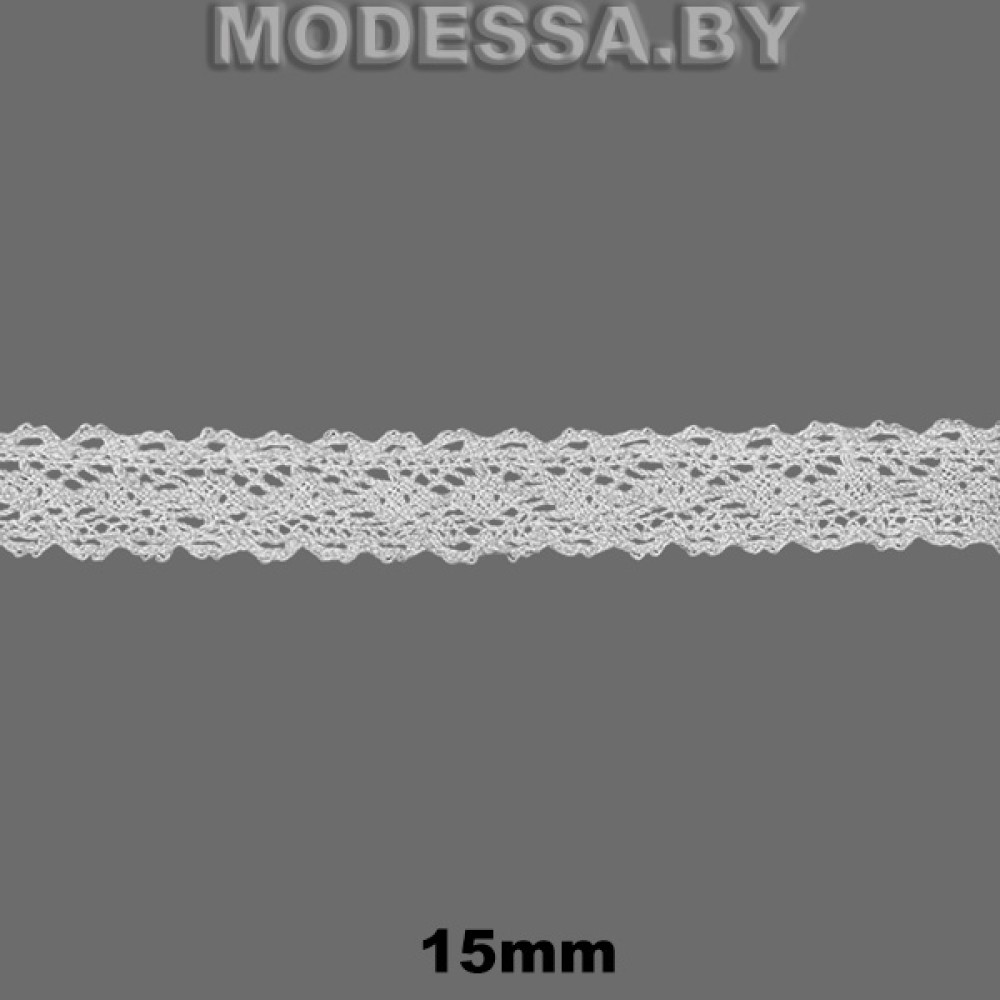 Кружево хлопковое, артикул: А8414. Ширина 15мм. Применяется при пошиве одежды, белья и домашнего текстиля, а также используют для декора других материалов.