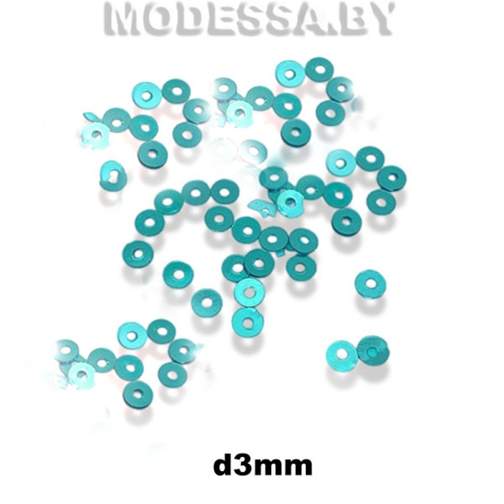Круглые пришивные пайетки (1уп.= 25гр.). Диаметр 3мм. Декоративный элемент, представляющий собой блестящий кружок, имеющий небольшое отверстие, для пришивания на ткани. Пайетки круглой формы идеально подходят для создания как объемных узоров, так и сплошных полотен. Часто используются для украшения нарядов, аксессуаров, предметов декора и др.