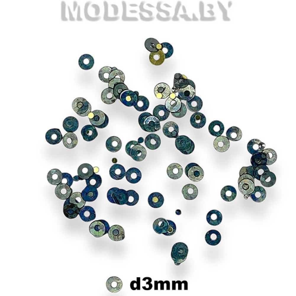 Круглые пришивные пайетки (1уп.= 25гр.). Диаметр 3мм. Декоративный элемент, представляющий собой блестящий кружок, имеющий небольшое отверстие, для пришивания на ткани. Пайетки круглой формы идеально подходят для создания как объемных узоров, так и сплошных полотен. Часто используются для украшения нарядов, аксессуаров, предметов декора и др.