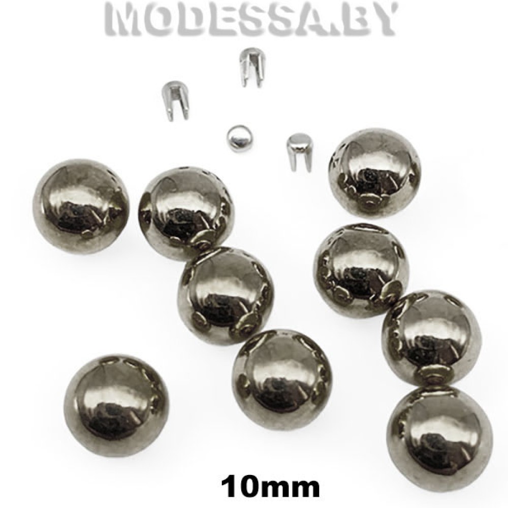 Бусина пластмассовая без отверстия диаметром 10мм. Гладкие бусины установочные на металлических шипах позволяют украсить вещи из текстиля, натуральной или искусственной кожи, пряжи и др. Благодаря шипам бусина надежно удерживается на материале. Нитки при этом не используются и поэтому не портят внешний вид вещей. Чтобы установить украшение на изделии, подберите подходящую матрицу и используйте специальный ручной пресс.