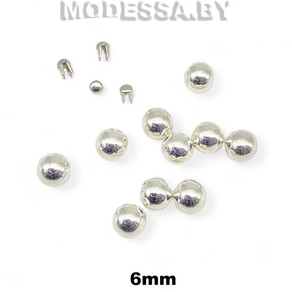 Бусина пластмассовая без отверстия диаметром 6мм. Гладкие бусины установочные на металлических шипах позволяют украсить вещи из текстиля, натуральной или искусственной кожи, пряжи и др. Благодаря шипам бусина надежно удерживается на материале. Нитки при этом не используются и поэтому не портят внешний вид вещей. Чтобы установить украшение на изделии, подберите подходящую матрицу и используйте специальный ручной пресс.