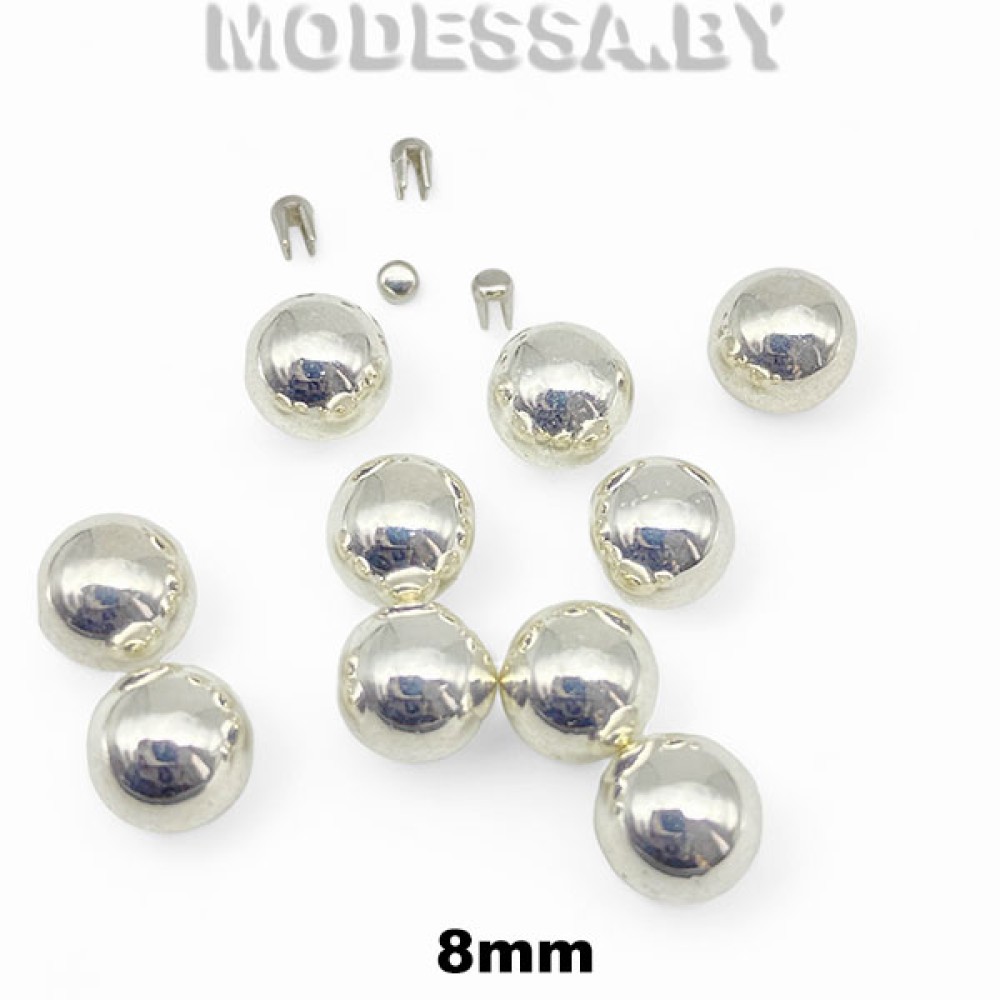Бусина пластмассовая без отверстия диаметром 8мм. Гладкие бусины установочные на металлических шипах позволяют украсить вещи из текстиля, натуральной или искусственной кожи, пряжи и др. Благодаря шипам бусина надежно удерживается на материале. Нитки при этом не используются и поэтому не портят внешний вид вещей. Чтобы установить украшение на изделии, подберите подходящую матрицу и используйте специальный ручной пресс.