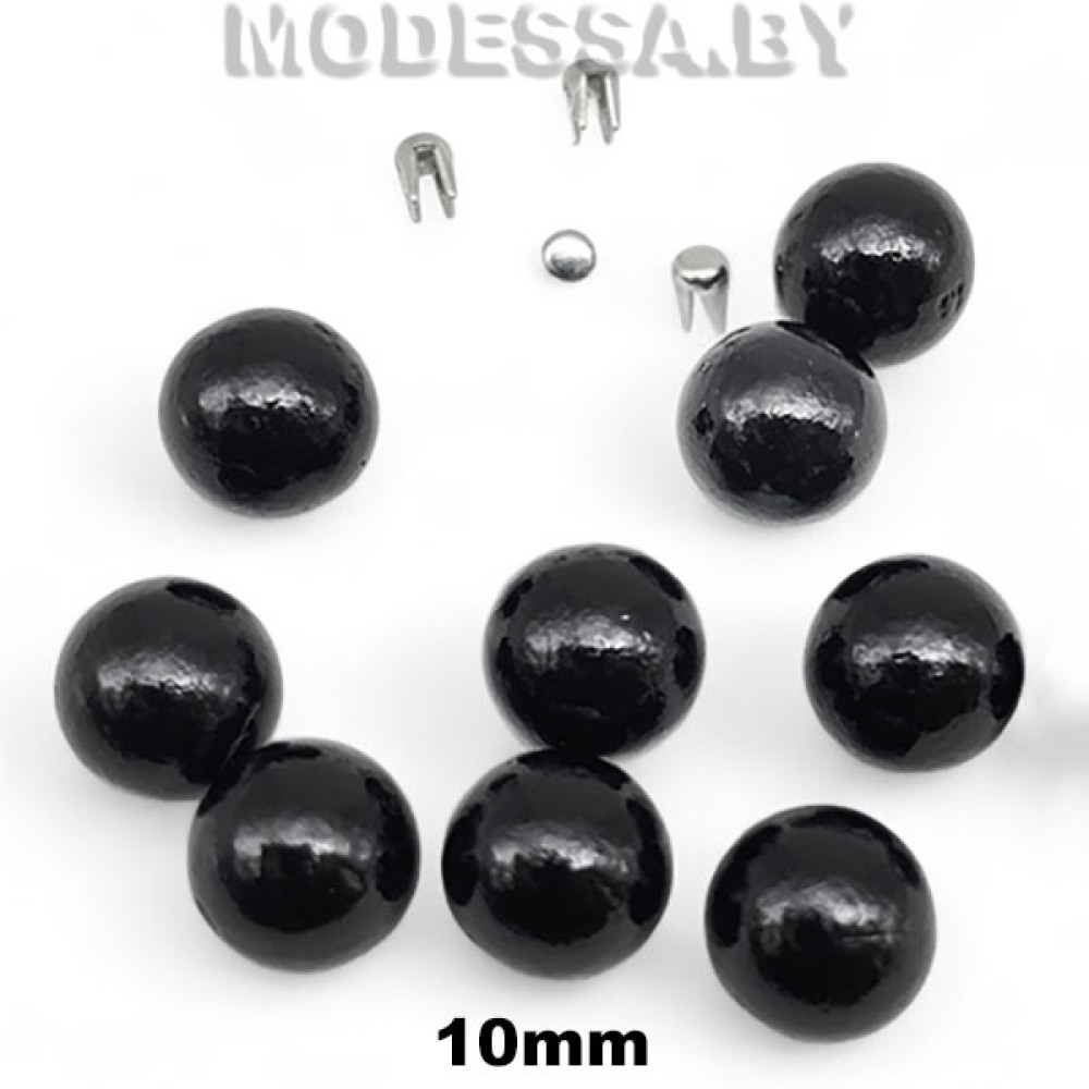 Бусина пластмассовая без отверстия диаметром 10мм. Гладкие бусины установочные на металлических шипах позволяют украсить вещи из текстиля, натуральной или искусственной кожи, пряжи и др. Благодаря шипам бусина надежно удерживается на материале. Нитки при этом не используются и поэтому не портят внешний вид вещей. Чтобы установить украшение на изделии, подберите подходящую матрицу и используйте специальный ручной пресс.