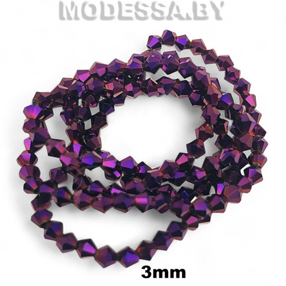 Бусины стеклянные граненые на нити биконусы (1нить=144шт), диаметр 3мм. Идеально подойдут для плетения браслетов, чокеров, колье, украшения ободков и других ювелирных изделий. Граненые хрустальные бусины кристаллы очень ярко переливаются, блестят. Бусины на нити так же подойдут для декора одежды и предметов интерьера и др.