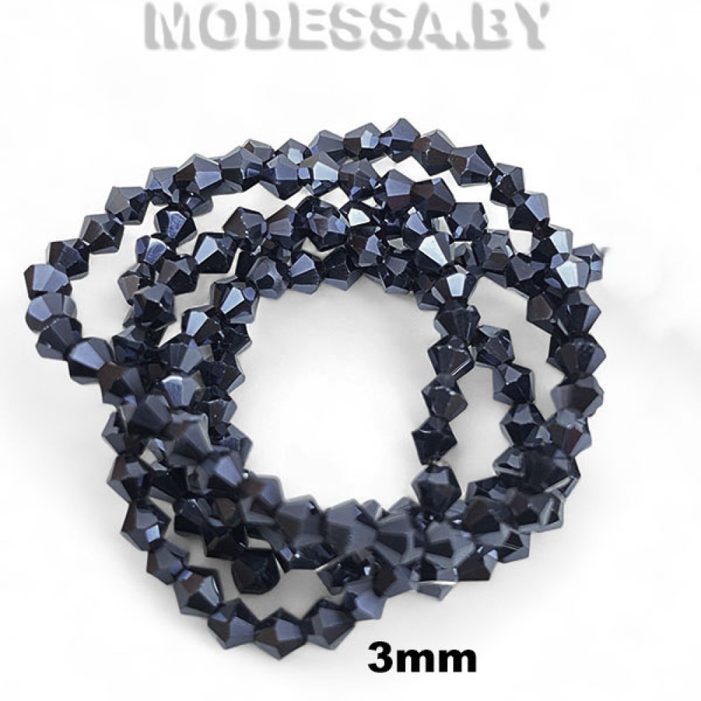 Бусины стеклянные граненые на нити бикуносы (1нить=144шт), диаметр 3мм. Идеально подойдут для плетения браслетов, чокеров, колье, украшения ободков и других ювелирных изделий. Граненые хрустальные бусины кристаллы очень ярко переливаются, блестят. Бусины на нити так же подойдут для декора одежды и предметов интерьера и др.