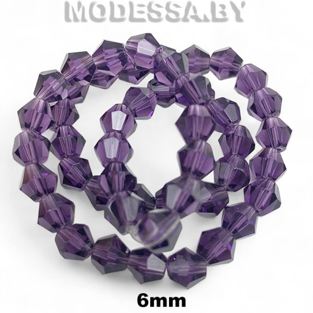 Бусины стеклянные граненые на нити биконусы (1нить=45шт), диаметр 6мм. Идеально подойдут для плетения браслетов, чокеров, колье, украшения ободков и других ювелирных изделий. Граненые хрустальные бусины кристаллы очень ярко переливаются, блестят. Бусины на нити так же подойдут для декора одежды и предметов интерьера и др.
