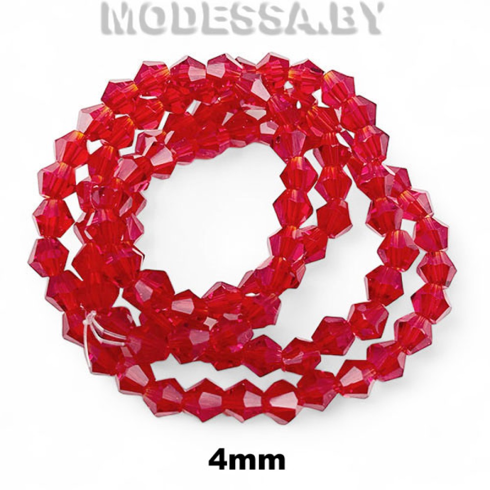 Бусины стеклянные граненые на нити биконусы (1нить=106шт), диаметр 4мм. Идеально подойдут для плетения браслетов, чокеров, колье, украшения ободков и других ювелирных изделий. Граненые хрустальные бусины кристаллы очень ярко переливаются, блестят. Бусины на нити так же подойдут для декора одежды и предметов интерьера и др.