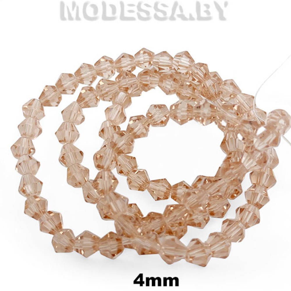 Бусины стеклянные граненые на нити биконусы (1нить=97шт), диаметр 4мм. Идеально подойдут для плетения браслетов, чокеров, колье, украшения ободков и других ювелирных изделий. Граненые хрустальные бусины кристаллы очень ярко переливаются, блестят. Бусины на нити так же подойдут для декора одежды и предметов интерьера и др.