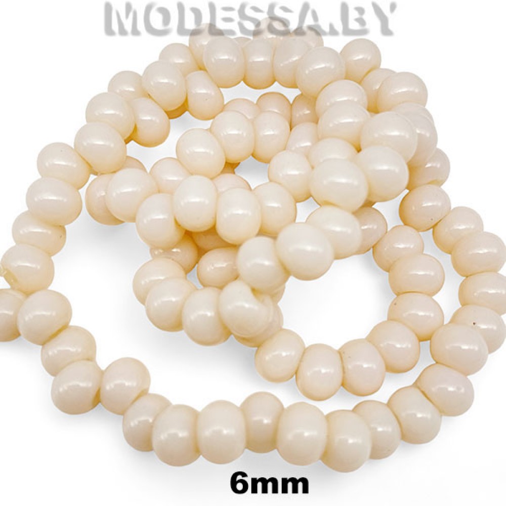 Бусины на нити стекл. 6мм Ц: Бежевый