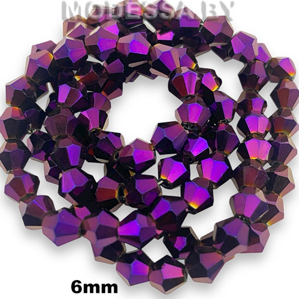 Бусины стеклянные граненые на нити биконусы (1нить=92шт), диаметр 6мм. Идеально подойдут для плетения браслетов, чокеров, колье, украшения ободков и других ювелирных изделий. Граненые хрустальные бусины кристаллы очень ярко переливаются, блестят. Бусины на нити так же подойдут для декора одежды и предметов интерьера и др.