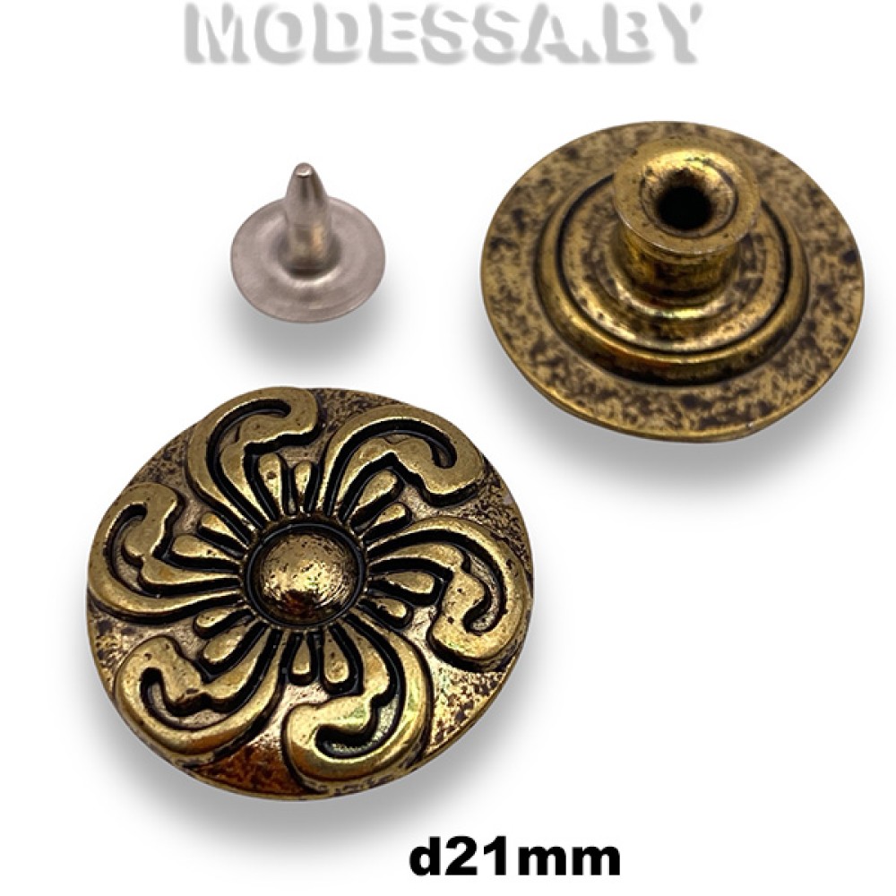 Заклёпка-пуговица металлическая, на плавающей ножке, артикул: D22230. Диаметр 21мм. Джинсовые пуговицы используются при изготовлении одежды и других изделий из джинсовой ткани. Данная пуговица будет эффектно смотреться как на джинсовой одежде, так и на рюкзаке, сумке.