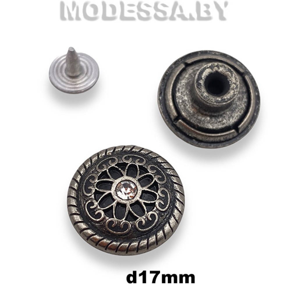 | *Черный никель d17 | 4 ОсобенностьСо стразами | 1 Тип товараЗаклёпка-пуговица |