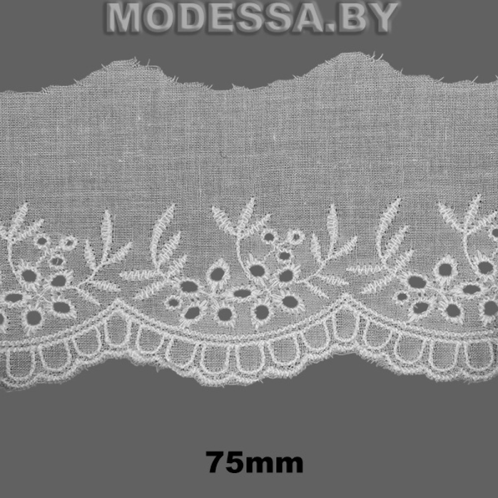 Вышивка в лентах хлопковая, артикул: DF0320746. Ширина 75мм. Применяется для украшения детской одежды и одежды для новорожденных, летних сарафанов, ночных сорочек, конвертов на выписку, постельного белья, домашнего текстиля и т. д.