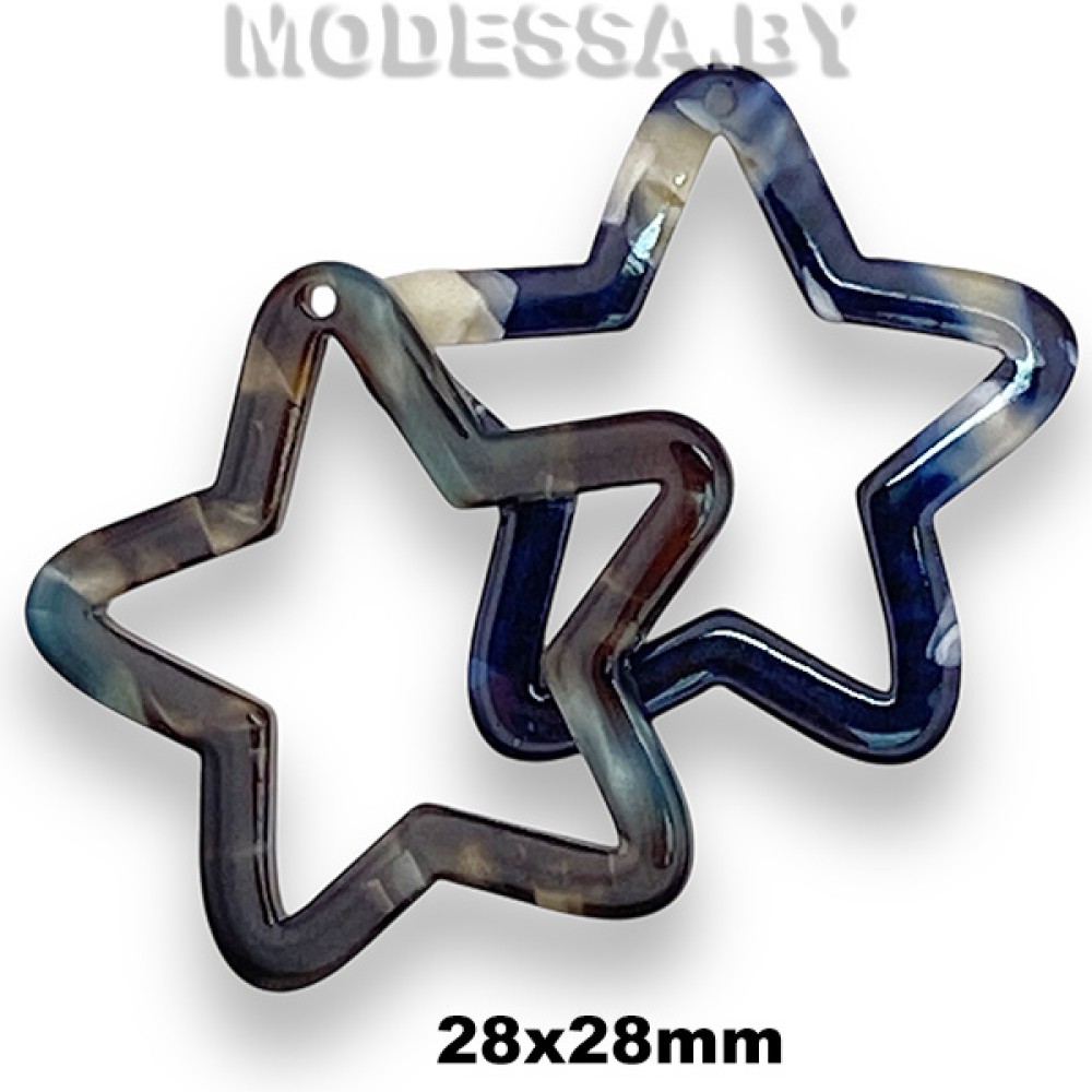 Украшение пластмассовое (подвеска) «Звезда» с одним отверстием. Размером 28х28мм. Используются для изготовления бус, браслетов, колье и др. бижутерии, аксессуаров, для декоративного украшения одежды и творческих поделок.