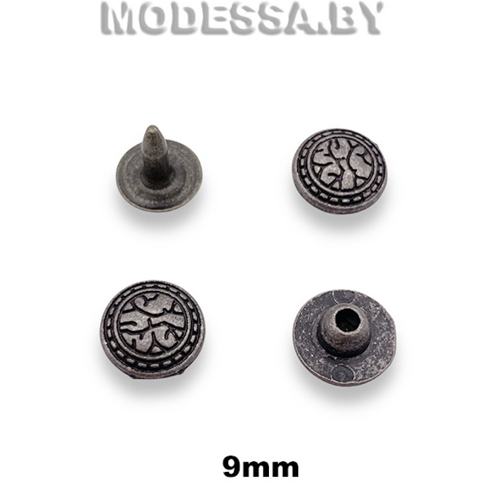 Заклёпка металлическая (хольнитен). Диаметр 9мм. Металлическая заклёпка или хольнитен — это декоративный элемент, придающий изделиям дополнительную прочность. Позволяет надежно соединить ткань в местах, подвергающихся нагрузкам. Хольнитены используются для укрепления швов на одежде, особенно на джинсах, куртках, сумках и рюкзаках и т. д.