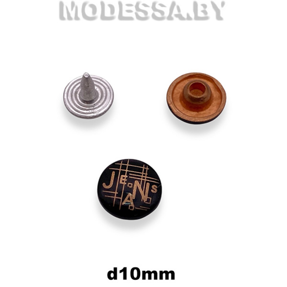 Заклёпка металлическая "Jeans" (хольнитен). Диаметр 10мм. Металлическая заклёпка или хольнитен — это декоративный элемент, придающий изделиям дополнительную прочность. Позволяет надежно соединить ткань в местах, подвергающихся нагрузкам. Хольнитены используются для укрепления швов на одежде, особенно на джинсах, куртках, сумках и рюкзаках и т. д.