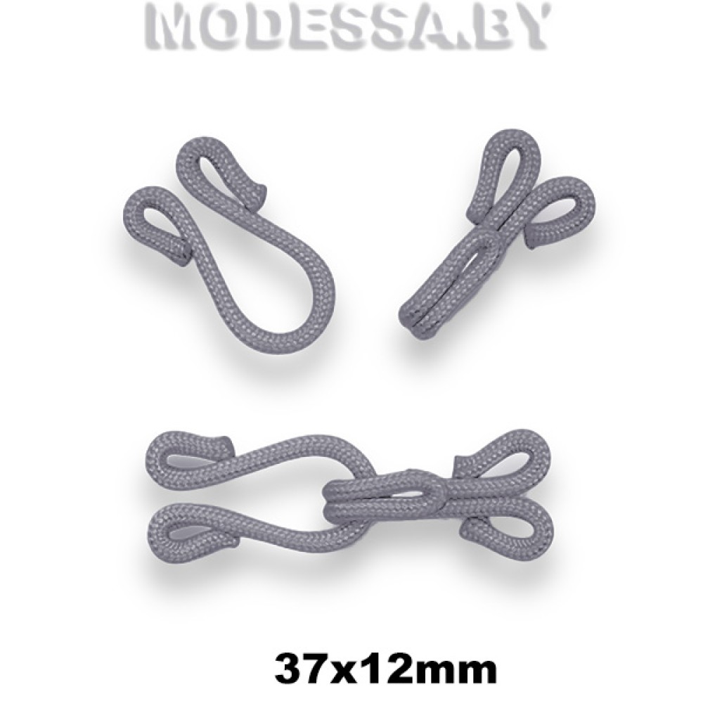 Крючок обтяжной металлический #3.7. Размер 37х12мм. Крючок-петля в оплетке из синтетической нити позволяет создать потайную застежку на брюках, юбке, корсете и других изделиях. Обеспечивает прочное соединение, легко застегивается и расстегивается.