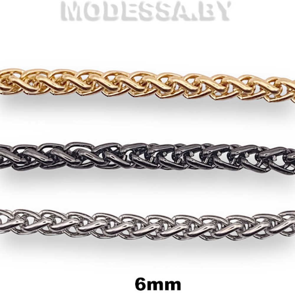 Цепочка металлическая, артикул: 6,0 NK. Ширина 6мм. Используется для рукоделия, а также декорирования одежды, сумок, мини-сумок или клатчей. Звенья цепи разъёмные, крепится к сумке с помощью карабинов.