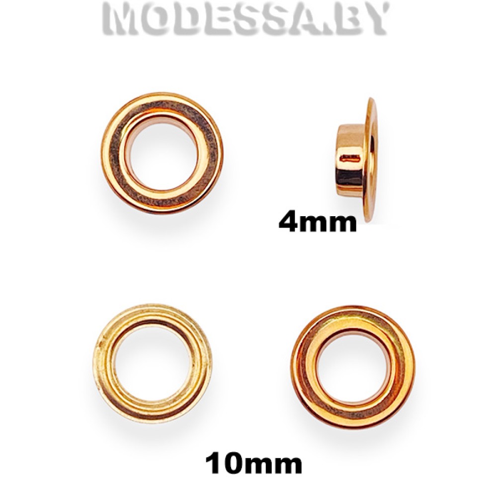 Люверсы (блочки) металлические. Внутренний диаметр 10мм. Внешний диаметр 18мм. Высота ножки 4мм. Позволяют аккуратно оформить шнуровку и укрепить края отверстий для шнуровки, защитить их от трения. Подходят для поясов, а также создания шнуровки на обуви, верхней одежде, корсетах, чехлах, тентах и других изделиях из плотных материалов. Установка люверса производится с помощью пресса и специальных насадок. Диаметром люверса называется внутренний диаметр отверстия в нем. Этот размер задается отверстием, которое необходимо получить.