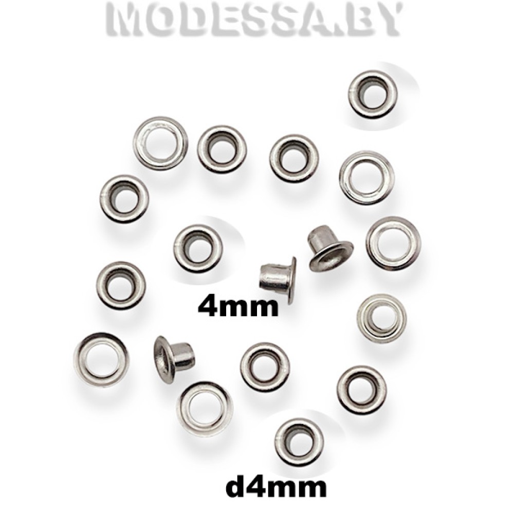 Люверсы металлические (блочки). Внутренний диаметр 4мм. Внешний диаметр 7мм. Высота ножки 4мм. Позволяют аккуратно оформить шнуровку и укрепить края отверстий для шнуровки, защитить их от трения. Подходят для поясов, а также создания шнуровки на обуви, верхней одежде, корсетах, чехлах, тентах и других изделиях из плотных материалов. Установка люверса производится с помощью пресса и специальных насадок. Диаметром люверса называется внутренний диаметр отверстия в нем. Этот размер задается отверстием, которое необходимо получить.