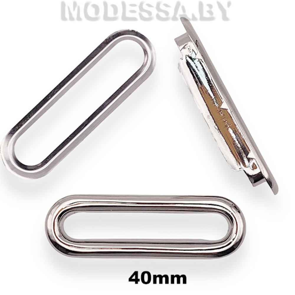 Люверсы металлические овальной формы. Размер внутреннего отверстия 40х6мм. Внешний размер 49х15мм. Высота ножки 7мм. Позволяют аккуратно оформить шнуровку и укрепить края отверстий для шнуровки, защитить их от трения. Подходят для поясов, а также создания шнуровки на верхней одежде, корсетах, чехлах, тентах и других изделиях из плотных материалов. Установка люверса производится с помощью пресса и специальных насадок. Размером люверса называется внутренний размер отверстия в нем. Этот размер задается отверстием, которое необходимо получить.