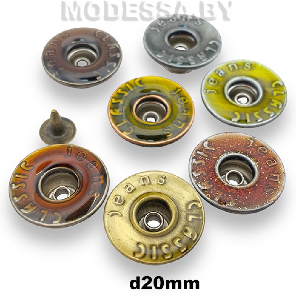 Заклёпка-пуговица металлическая, на плавающей ножке, артикул: 01725. Диаметр 20мм. Джинсовые пуговицы используются при изготовлении одежды и других изделий из джинсовой ткани. Данная пуговица будет эффектно смотреться как на одежде, так и на рюкзаке, сумке.