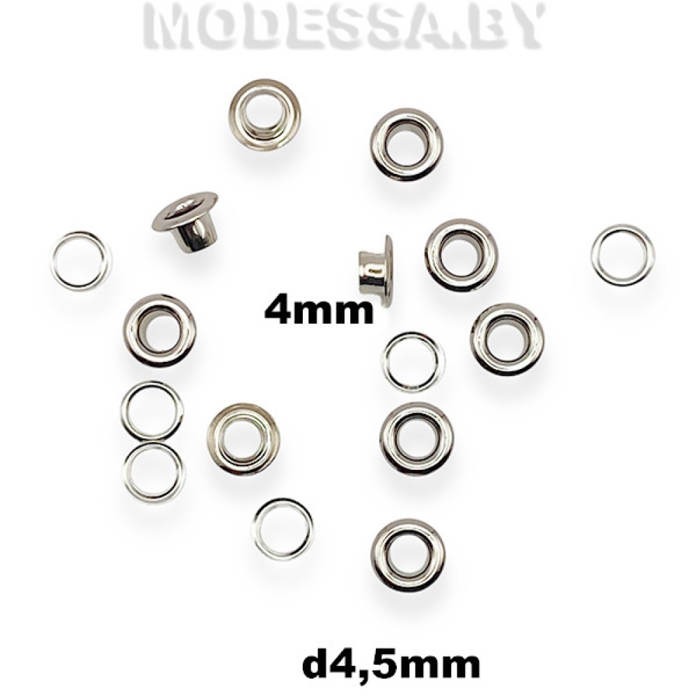 Люверсы металлические (блочки). Внутренний диаметр 4.5мм. Внешний диаметр 8мм. Высота ножки 4мм. Позволяют аккуратно оформить шнуровку и укрепить края отверстий для шнуровки, защитить их от трения. Подходят для поясов, а также создания шнуровки на обуви, верхней одежде, корсетах, чехлах, тентах и других изделиях из плотных материалов. Установка люверса производится с помощью пресса и специальных насадок. Диаметром люверса называется внутренний диаметр отверстия в нем. Этот размер задается отверстием, которое необходимо получить.