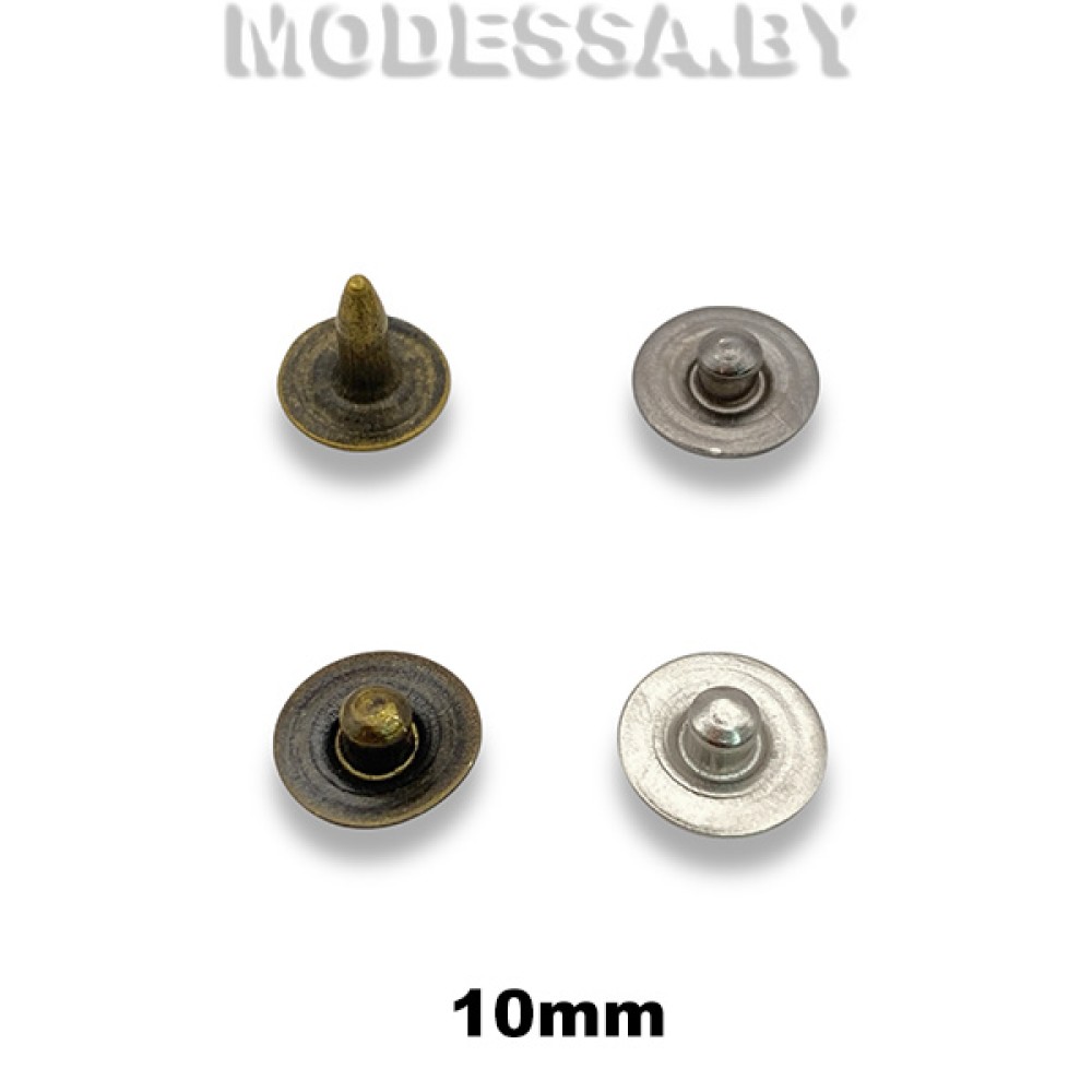 Заклёпка металлическая (хольнитен). Диаметр 10мм. Металлическая заклёпка или хольнитен — это декоративный элемент, придающий изделиям дополнительную прочность. Позволяет надежно соединить ткань в местах, подвергающихся нагрузкам. Хольнитены используются для укрепления швов на одежде, особенно на джинсах, куртках, сумках и рюкзаках и т. д.