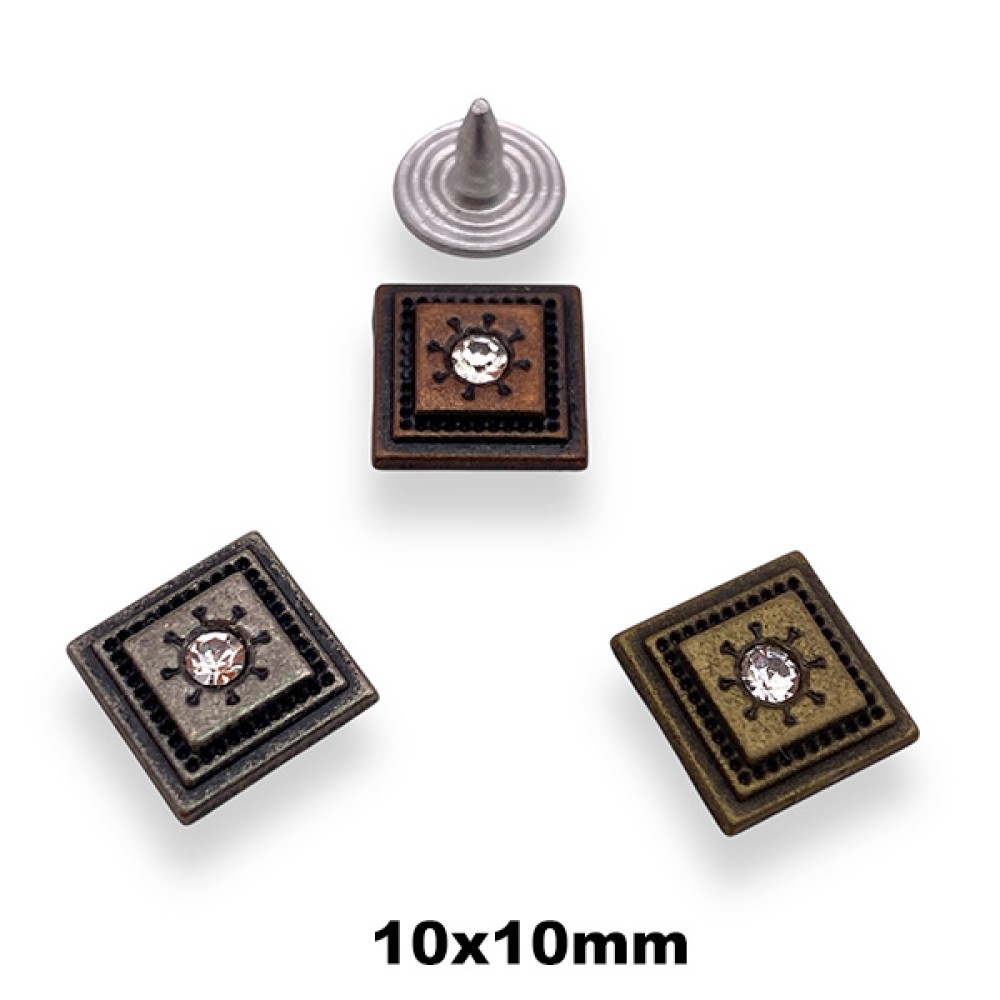 Заклёпка металлическая (хольнитен), артикул: 1000515. Размер 10х10мм. Металлическая заклепка или хольнитен — это не просто декоративный элемент, а функциональная деталь, придающая изделиям дополнительную прочность. Хольнитены используются для укрепления швов на одежде, особенно на джинсах, куртках, сумках и рюкзаках и т. д.
