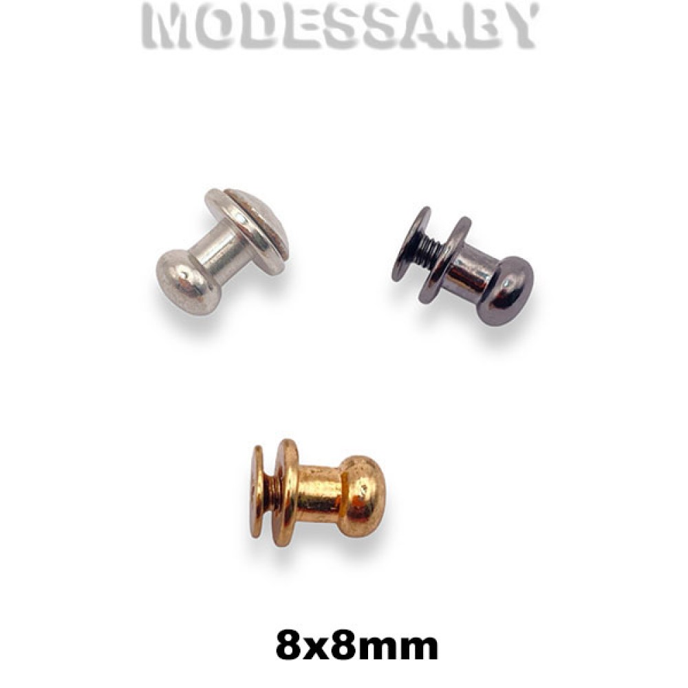 Винт для ремней и сумок металлический, артикул: 03008. Диаметр пукли 8мм, диаметр шляпки винта 7мм, высота ножки 5мм, общая высота 8мм. Кобурный винт – фурнитура, которая позволяет оформить застежку на сумках, поясах, кобуре, браслетах. Подходит для изделий из натуральной или искусственной кожи, замши.