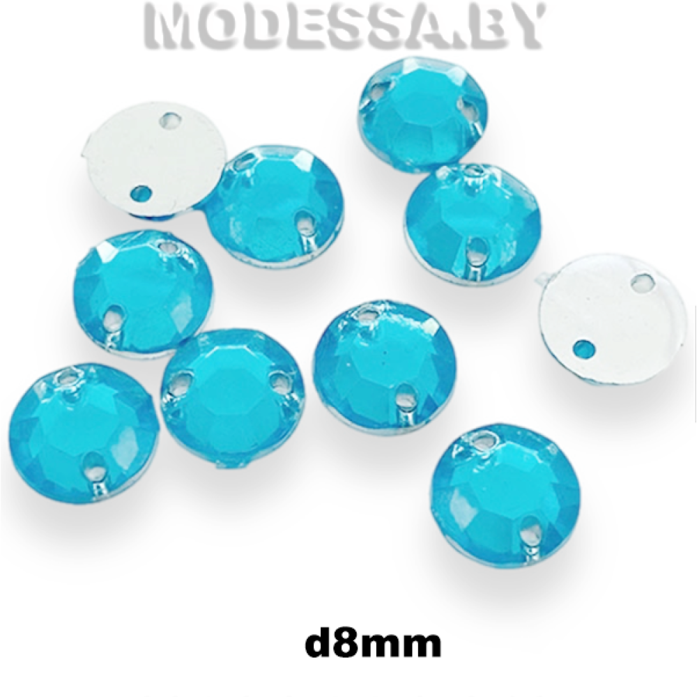 Украшение пластмассовое пришивное круглой формы. Диаметр 8мм. Украшение с двумя отверстиями и плоским дном используется для украшения одежды, обуви, сумок, для декорирования предметов интерьера, творческих поделок и др.