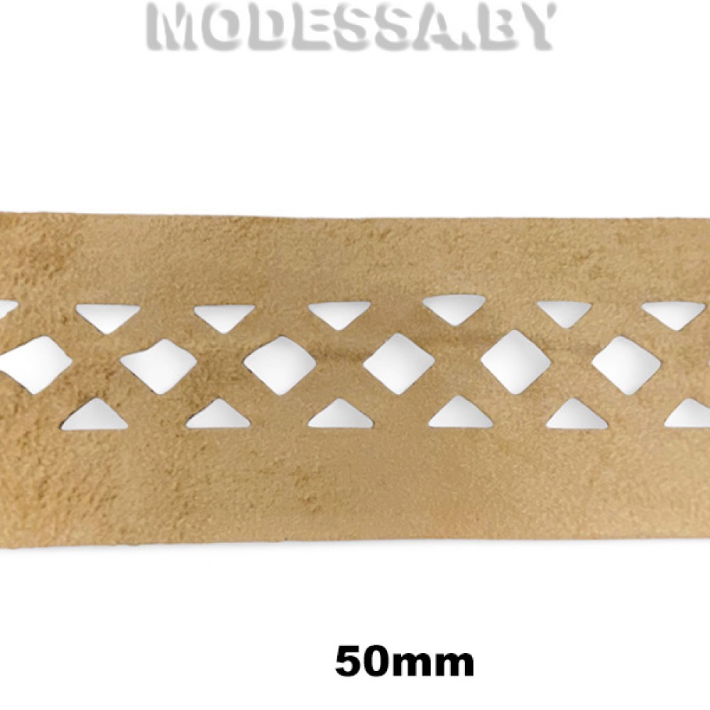 Тесьма декоративная с тиснением «ромб». Ширина 50мм. Применяется при декоративной отделки изделий из текстиля, а также при изготовлении головных уборов, кожгалантереи и др.