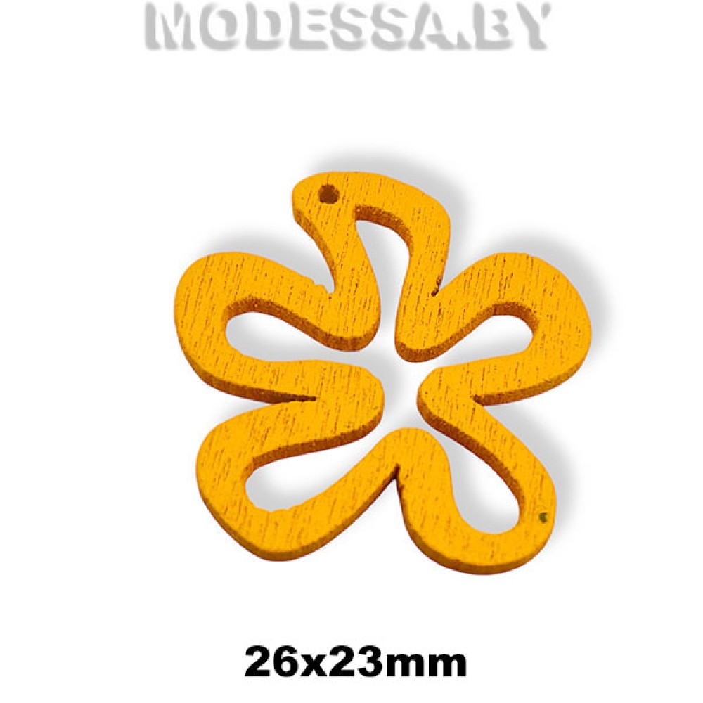 Украшение декор. дерев. Цветок фигурн ц: Оранжевый 26х23мм