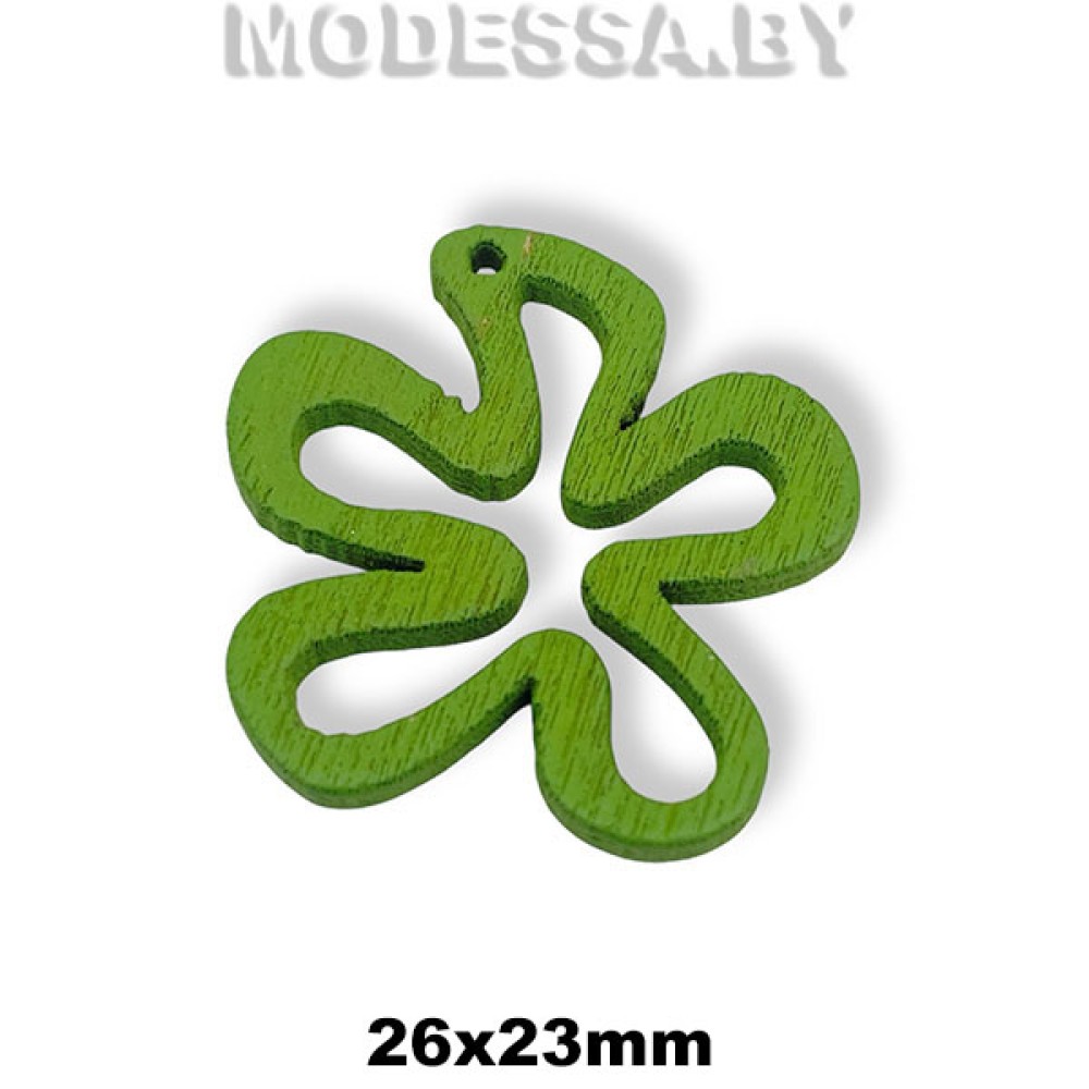 Украшение декор. дерев. Цветок фигурн ц: Зеленый 26х23мм