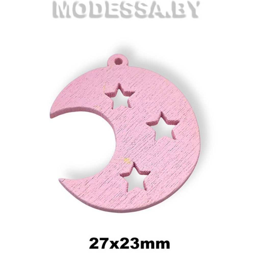 Украшение декор. дерев. Луна ц: Розовый 27х23мм