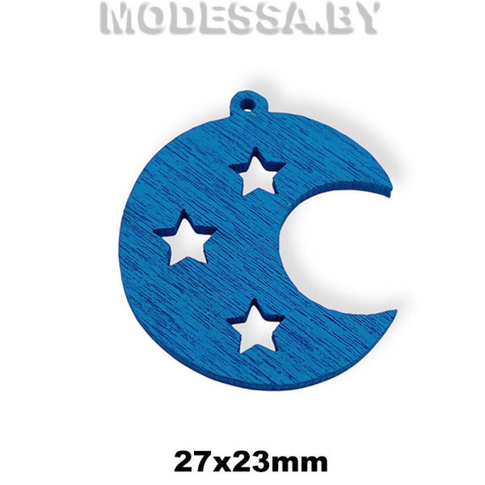 Украшение декор. дерев. Луна ц: Синий 27х23мм