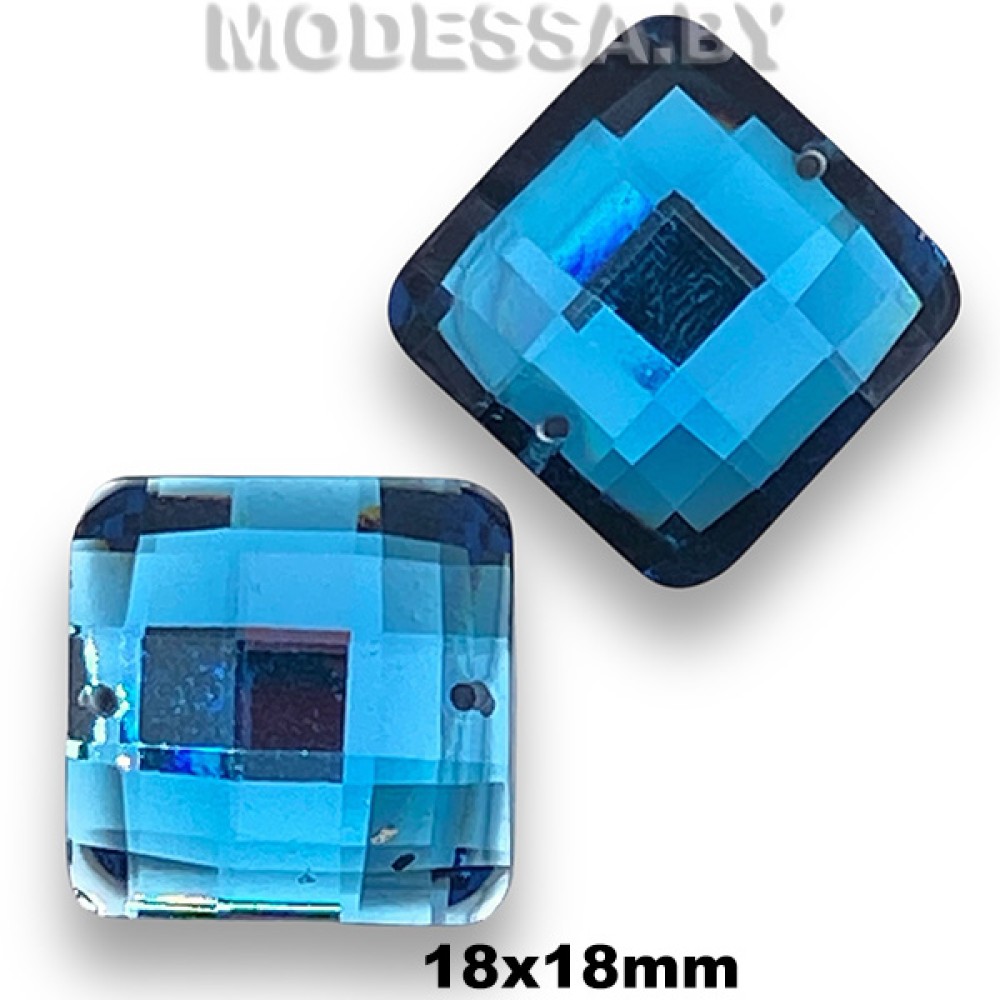 Украшение пластмассовое пришивное квадратной формы. Размер 18х18мм. Украшение с двумя отверстиями и плоским дном используется для украшения одежды, обуви, сумок, для декорирования предметов интерьера, творческих поделок и др.