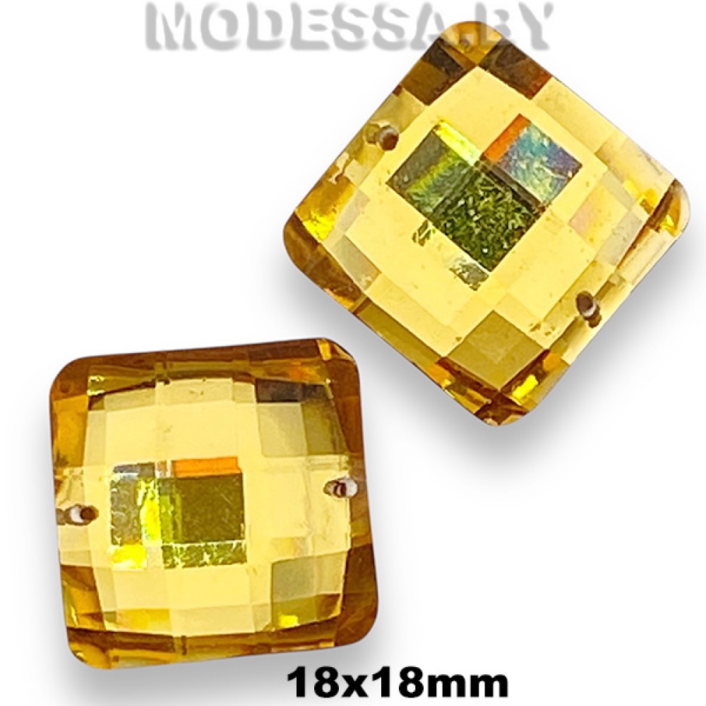 Украшение пластмассовое пришивное квадратной формы. Размер 18х18мм. Украшение с двумя отверстиями и плоским дном используется для украшения одежды, обуви, сумок, для декорирования предметов интерьера, творческих поделок и др.