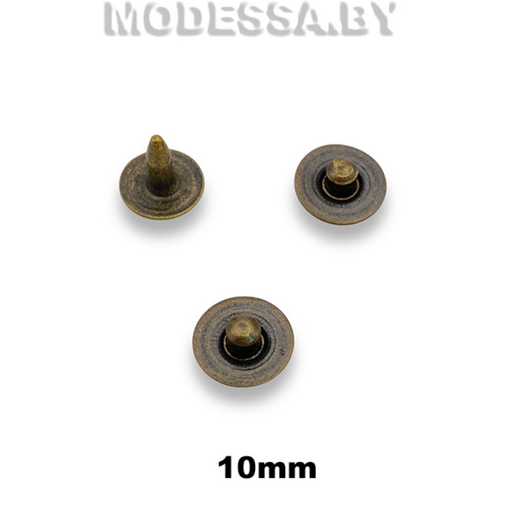 Заклёпка металлическая (хольнитен). Диаметр 10мм. Металлическая заклёпка или хольнитен — это декоративный элемент, придающий изделиям дополнительную прочность. Позволяет надежно соединить ткань в местах, подвергающихся нагрузкам. Хольнитены используются для укрепления швов на одежде, особенно на джинсах, куртках, сумках и рюкзаках и т. д.