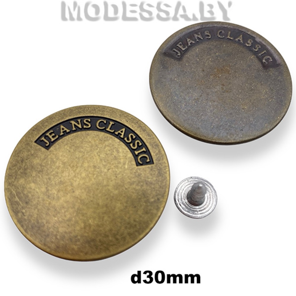 Заклёпка-пуговица металлическая "Jeans classic", на фиксированной ножке, артикул: 0345 СТМ. Диаметр 30мм. Джинсовые пуговицы используются при изготовлении одежды и других изделий из джинсовой ткани. Данная пуговица будет эффектно смотреться как на одежде, так и на рюкзаке, сумке.