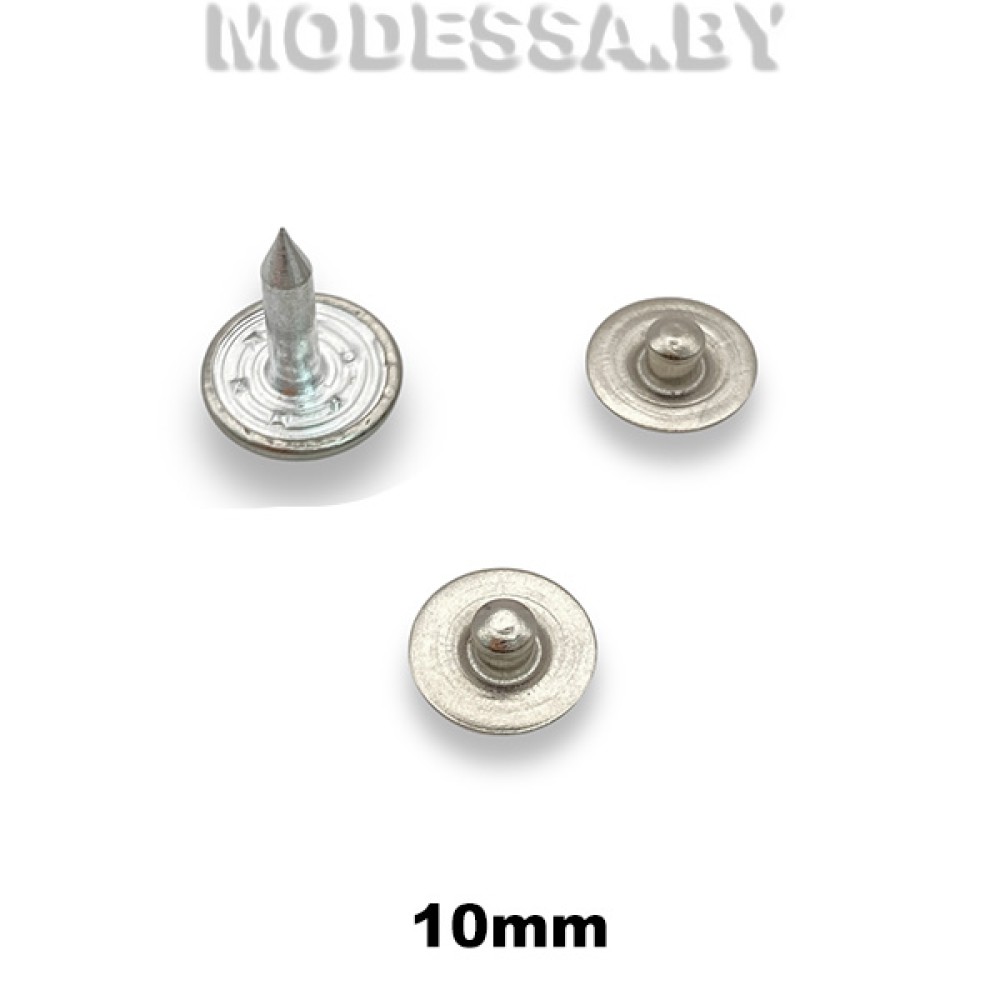 Заклёпка металлическая (хольнитен). Диаметр 10мм. Металлическая заклёпка или хольнитен — это декоративный элемент, придающий изделиям дополнительную прочность. Позволяет надежно соединить ткань в местах, подвергающихся нагрузкам. Хольнитены используются для укрепления швов на одежде, особенно на джинсах, куртках, сумках и рюкзаках и т. д.