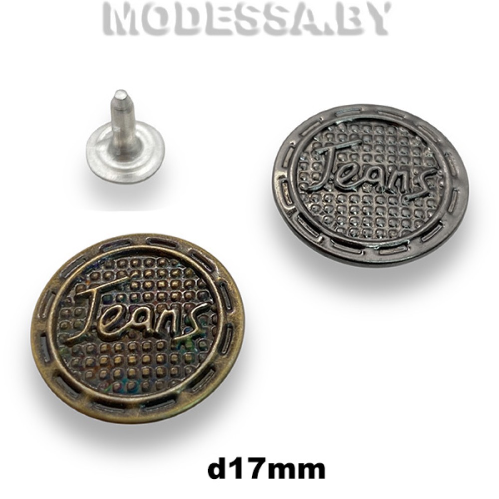Заклёпка-пуговица металлическая, на фиксированной ножке, артикул: 27889.4. Диаметр 17мм. Джинсовые пуговицы используются при изготовлении одежды и других изделий из джинсовой ткани. Данная пуговица будет эффектно смотреться как на джинсовой одежде, так и на рюкзаке, сумке.