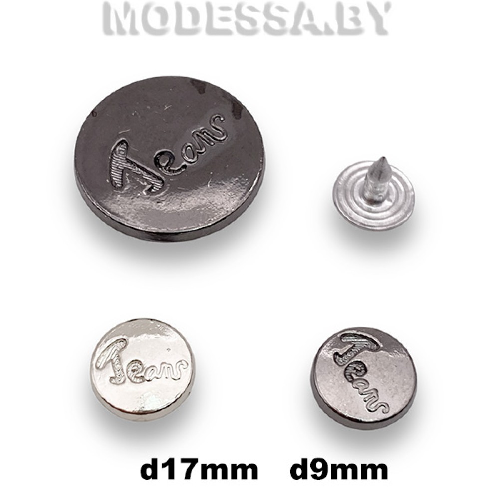 Заклёпки металлические, артикул: 28862.17; 28862.08. Диаметр 17мм; 9мм. Используются при изготовлении одежды и других изделий из джинсовой ткани и др. Будут эффектно смотреться как на одежде, так и на рюкзаке, сумке.